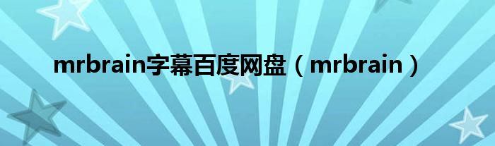 大家好,小问来为大家解答以上问题。mrbrain字幕百度网盘,mrbrain这个很多人还不知道,现在让我们一起来看看吧!