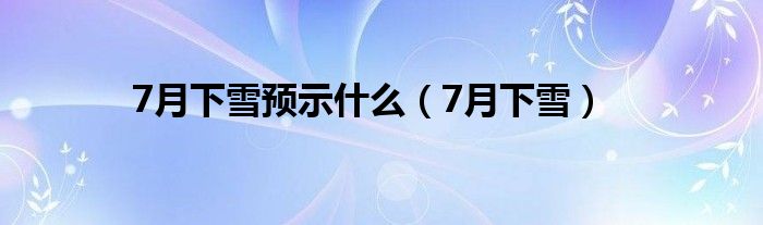 7月下雪预示什么(7月下雪)