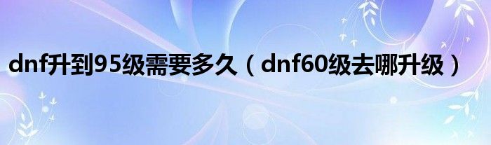以上就是【dnf升到95级需要多久,dnf60级去哪升级】相关内容。