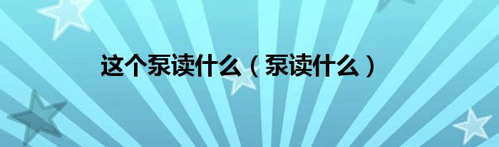 以上就是【这个泵读什么,泵读什么】相关内容。