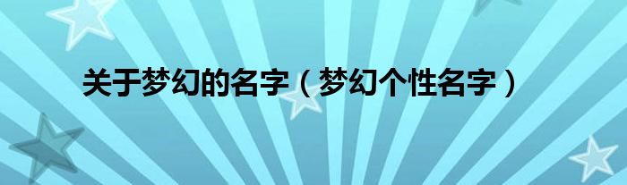 大家好,小问来为大家解答以上问题。关于梦幻的名字,梦幻个性名字这个很多人还不知道,现在让我们一起来看看吧!