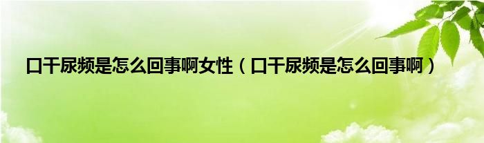 大家好,小问来为大家解答以上问题。口干尿频是怎么回事啊女性,口干尿频是怎么回事啊这个很多人还不知道,现在让我们一起来看看吧!