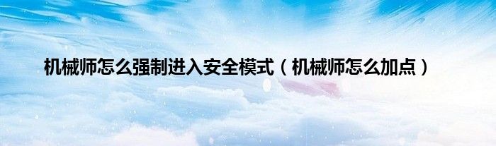 以上就是【机械师怎么强制进入安全模式,机械师怎么加点】相关内容。