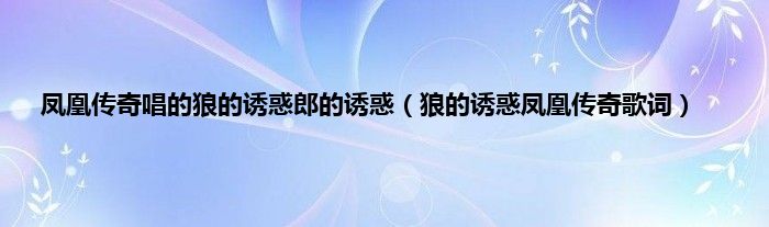 以上就是【凤凰传奇唱的狼的诱惑郎的诱惑,狼的诱惑凤凰传奇歌词】相关内容。