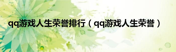大家好,小问来为大家解答以上问题。qq游戏人生荣誉排行,qq游戏人生荣誉这个很多人还不知道,现在让我们一起来看看吧!