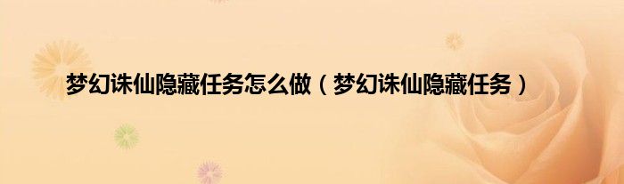 大家好,小问来为大家解答以上问题。梦幻诛仙隐藏任务怎么做,梦幻诛仙隐藏任务这个很多人还不知道,现在让我们一起来看看吧!