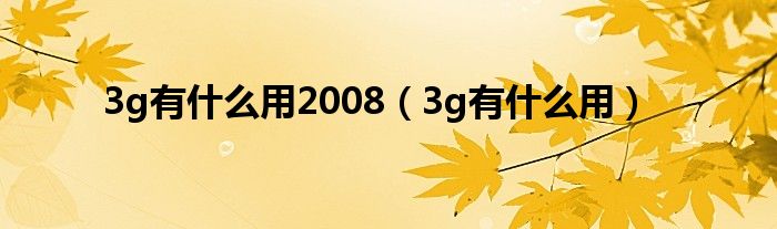大家好,小问来为大家解答以上问题。3g有什么用2008,3g有什么用这个很多人还不知道,现在让我们一起来看看吧!