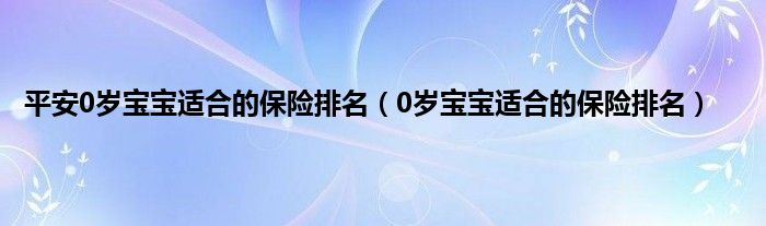 以上就是【平安0岁宝宝适合的保险排名,0岁宝宝适合的保险排名】相关内容。
