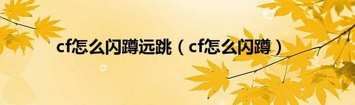 以上就是【cf怎么闪蹲远跳,cf怎么闪蹲】相关内容。