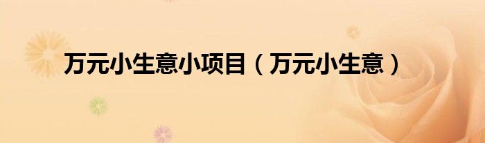 以上就是【万元小生意小项目,万元小生意】相关内容。