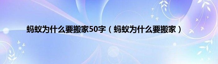 以上就是【蚂蚁为什么要搬家50字,蚂蚁为什么要搬家】相关内容。