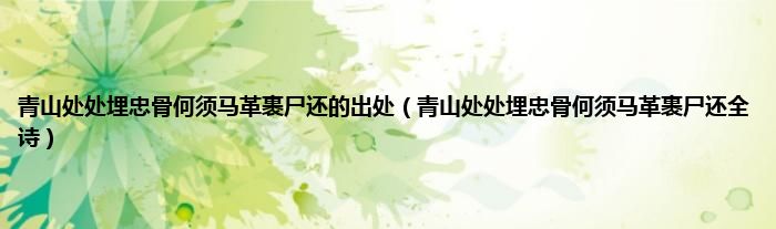 5、 至于“青山处处埋忠骨 何须马革裹尸还 ”出自同一首诗就不知道了。