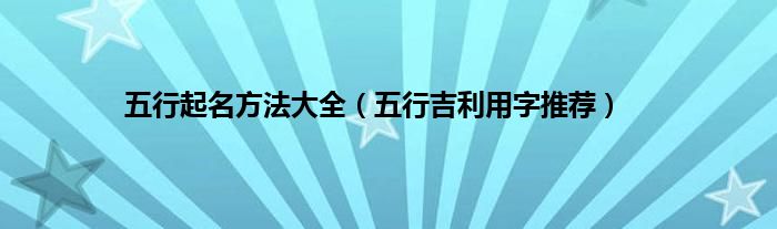 大家好,综合小编来为大家讲解下。五行起名方法大全,五行吉利用字推荐这个很多人还不知道,现在让我们一起来看看吧!