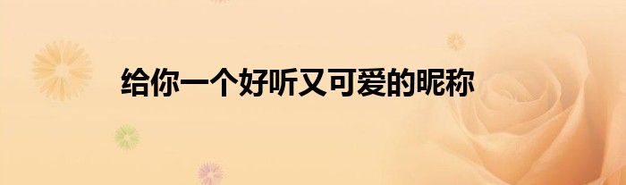 大家好,综合小编来为大家讲解下。给你一个好听又可爱的昵称这个很多人还不知道,现在让我们一起来看看吧!