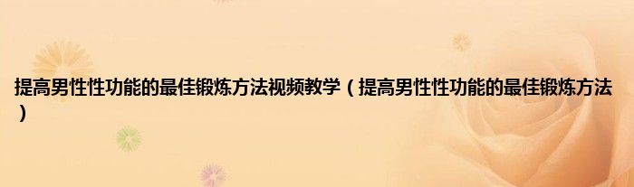 本文,提高男性性功能的最佳锻炼方法视频教学,提高男性性功能的最佳锻炼方法到此就分享完毕,希望对大家有所帮助。