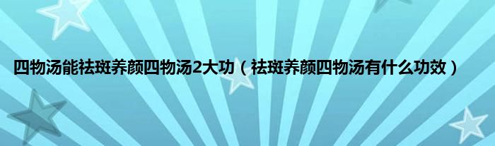 大家好,四物汤能祛斑养颜四物汤2大功,祛斑养颜四物汤有什么功效很多人还不知道,现在让我们一起来看看吧!