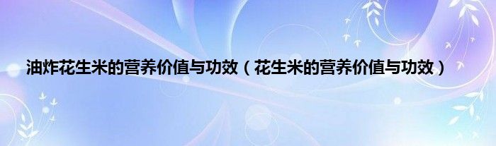 本文,油炸花生米的营养价值与功效,花生米的营养价值与功效到此就分享完毕,希望对大家有所帮助。