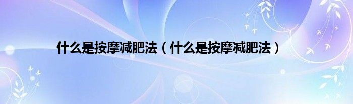 大家好,什么是按摩减肥法,什么是按摩减肥法很多人还不知道,现在让我们一起来看看吧!