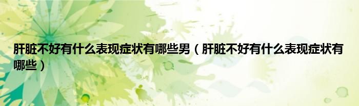 大家好,肝脏不好有什么表现症状有哪些男,肝脏不好有什么表现症状有哪些很多人还不知道,现在让我们一起来看看吧!