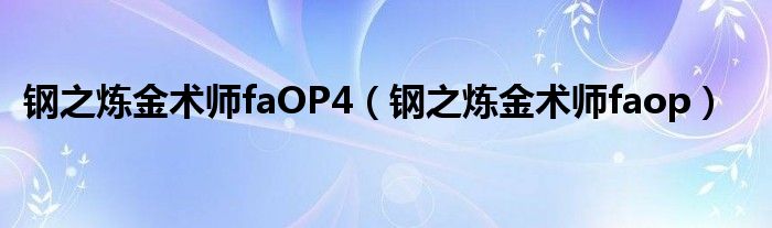 大家好,小问来为大家解答以上问题。钢之炼金术师faOP4,钢之炼金术师faop这个很多人还不知道,现在让我们一起来看看吧!