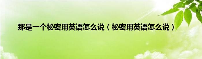 大家好,小问来为大家解答以上问题。那是一个秘密用英语怎么说,秘密用英语怎么说这个很多人还不知道,现在让我们一起来看看吧!