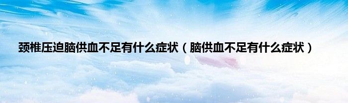 本文,颈椎压迫脑供血不足有什么症状,脑供血不足有什么症状到此就分享完毕,希望对大家有所帮助。