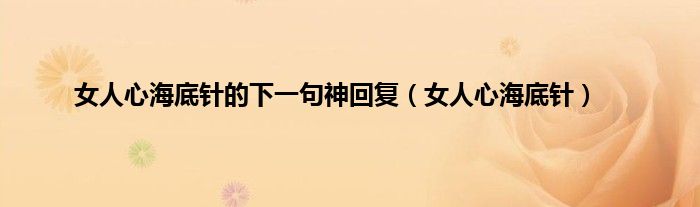 大家好,小问来为大家解答以上问题。女人心海底针的下一句神回复,女人心海底针这个很多人还不知道,现在让我们一起来看看吧!