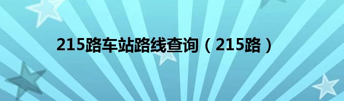 大家好,小问来为大家解答以上问题。215路车站路线查询,215路这个很多人还不知道,现在让我们一起来看看吧!