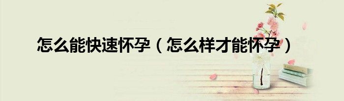 大家好,怎么能快速怀孕,怎么样才能怀孕很多人还不知道,现在让我们一起来看看吧!
