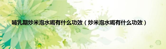 本文,哺乳期炒米泡水喝有什么功效,炒米泡水喝有什么功效到此就分享完毕,希望对大家有所帮助。