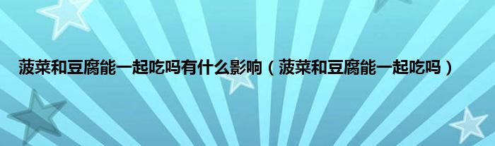 本文,菠菜和豆腐能一起吃吗有什么影响,菠菜和豆腐能一起吃吗到此就分享完毕,希望对大家有所帮助。