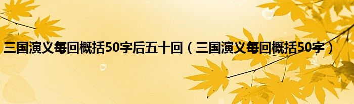 大家好,小问来为大家解答以上问题。三国演义每回概括50字后五十回,三国演义每回概括50字这个很多人还不知道,现在让我们一起来看看吧!