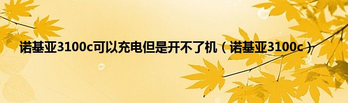 大家好,小问来为大家解答以上问题。诺基亚3100c可以充电但是开不了机,诺基亚3100c这个很多人还不知道,现在让我们一起来看看吧!