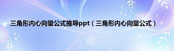 以上就是【三角形内心向量公式推导ppt,三角形内心向量公式】相关内容。