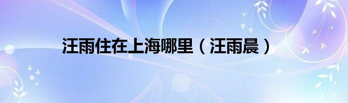以上就是【汪雨住在上海哪里,汪雨晨】相关内容。