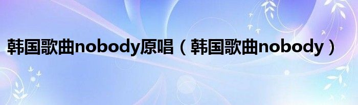 韩国歌曲nobody原唱(韩国歌曲nobody)