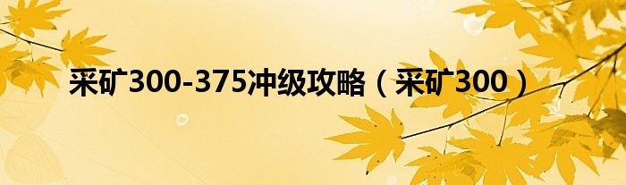 以上就是【采矿300-375冲级攻略,采矿300】相关内容。