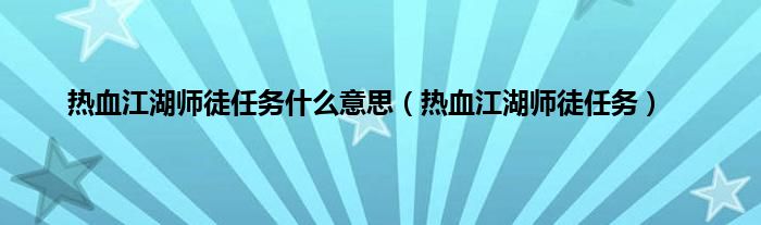 大家好,小问来为大家解答以上问题。热血江湖师徒任务什么意思,热血江湖师徒任务这个很多人还不知道,现在让我们一起来看看吧!