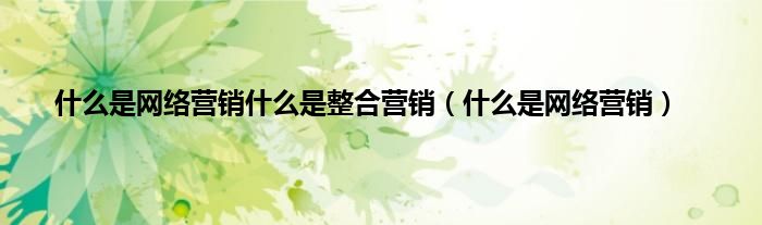 以上就是【什么是网络营销什么是整合营销,什么是网络营销】相关内容。