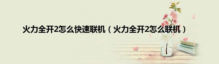本文,火力全开2怎么快速联机,火力全开2怎么联机到此就分享完毕,希望对大家有所帮助。
