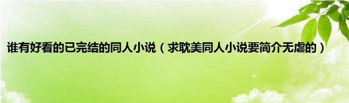 大家好,谁有好看的已完结的同人小说,求耽美同人小说要简介无虐的很多人还不知道,现在让我们一起来看看吧!