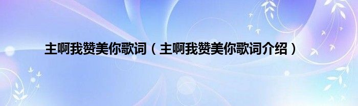 大家好,主啊我赞美你歌词,主啊我赞美你歌词介绍很多人还不知道,现在让我们一起来看看吧!