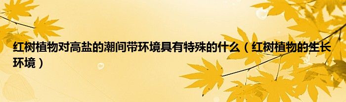 本文,红树植物对高盐的潮间带环境具有特殊的什么,红树植物的生长环境到此就分享完毕,希望对大家有所帮助。