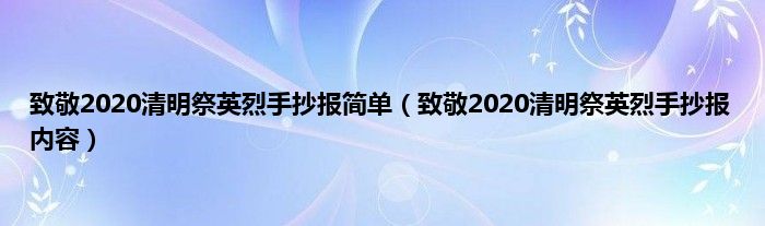 本文,致敬2020清明祭英烈手抄报简单,致敬2020清明祭英烈手抄报内容到此就分享完毕,希望对大家有所帮助。