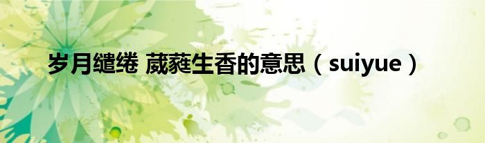大家好,小问来为大家解答以上问题。岁月缱绻 葳蕤生香的意思,suiyue这个很多人还不知道,现在让我们一起来看看吧!
