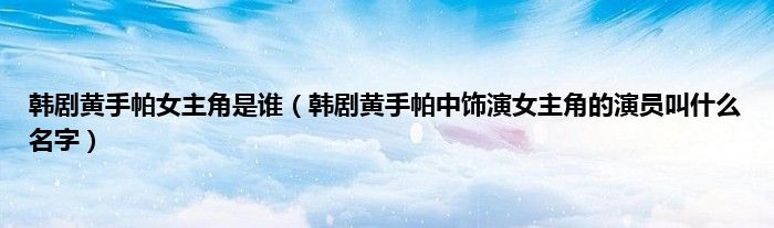 本文,韩剧黄手帕女主角是谁,韩剧黄手帕中饰演女主角的演员叫什么名字到此就分享完毕,希望对大家有所帮助。