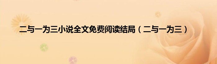 大家好,小问来为大家解答以上问题。二与一为三小说全文免费阅读结局,二与一为三这个很多人还不知道,现在让我们一起来看看吧!