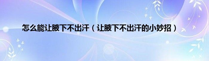 大家好,小问来为大家解答以上问题。怎么能让腋下不出汗,让腋下不出汗的小妙招这个很多人还不知道,现在让我们一起来看看吧!